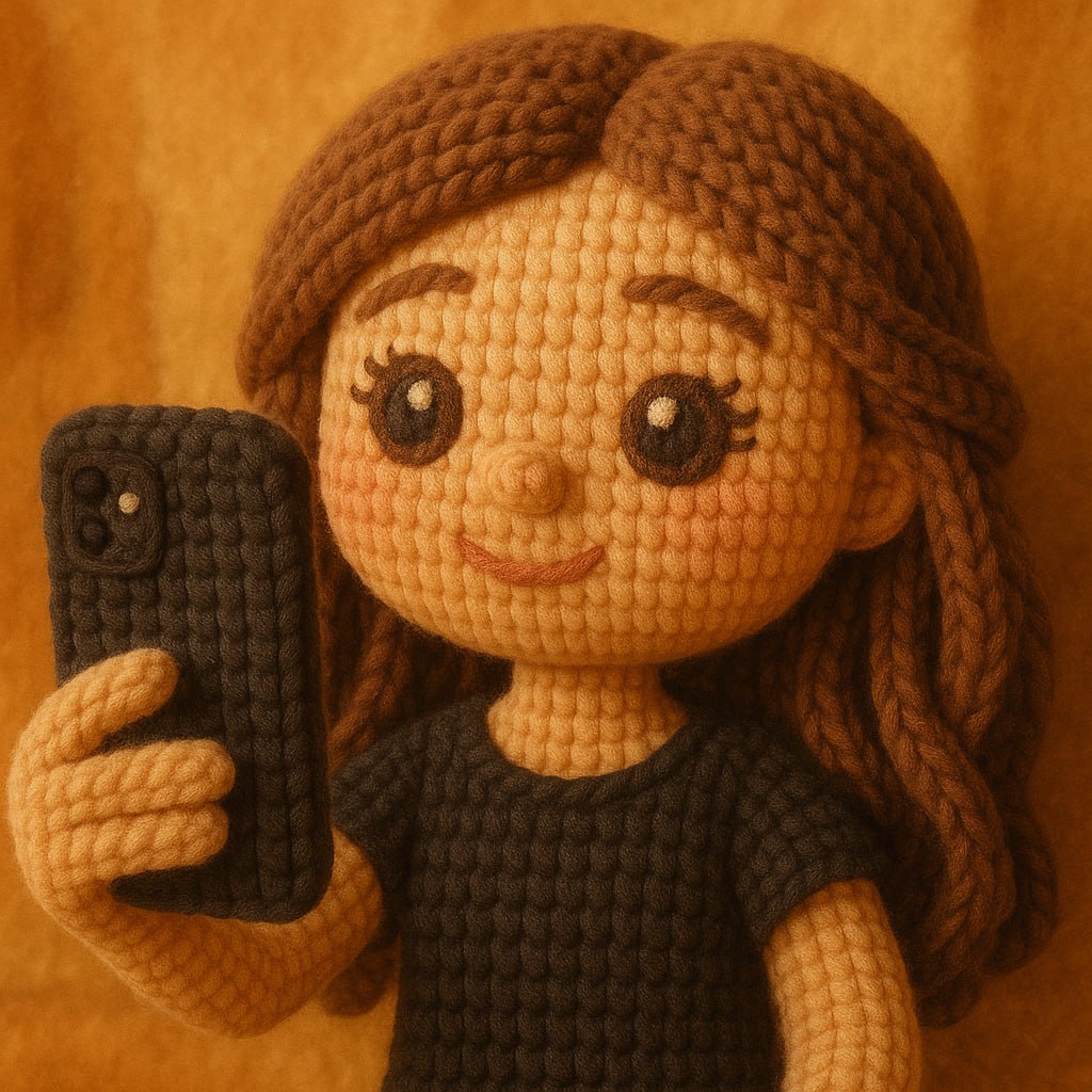 Сделай это изображение похожим на милую вязаную игрушку с фактурой пряжи и мягкой строчкой. Используй тёплые цвета и уютное, плюшевое ощущение.