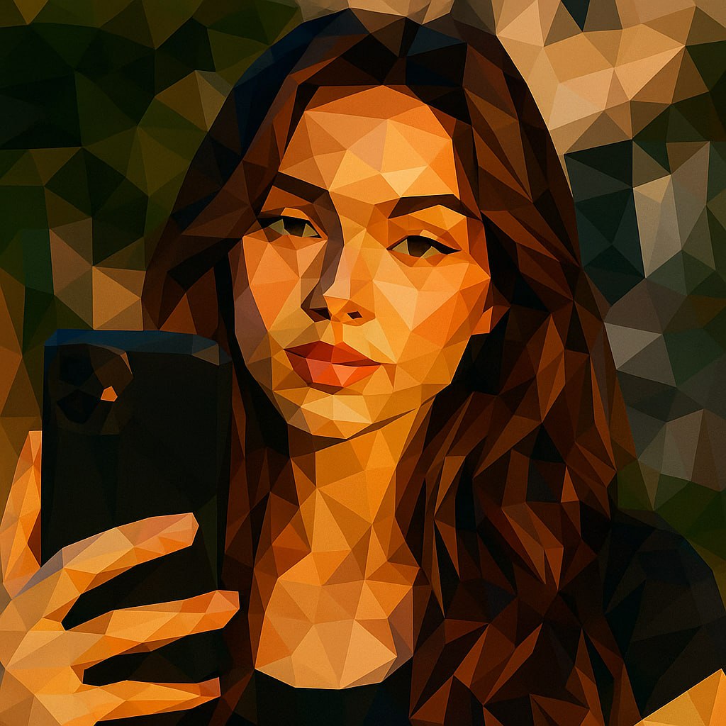 Перерисуй это изображение в стиле Polygon, сохрани все ключевые детали, добавь геометрические формы, упрощённые плоские полигоны.