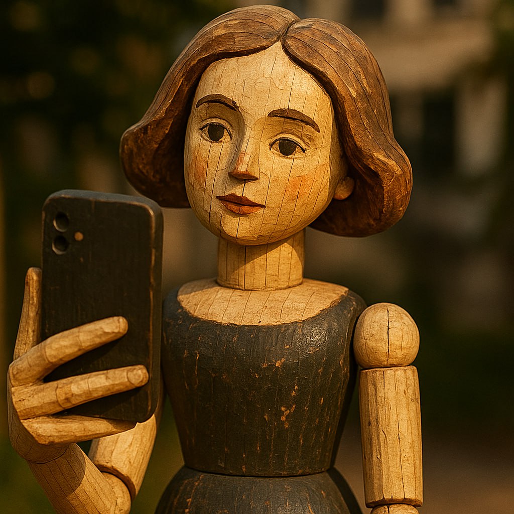 Преврати человека с фото в деревянную фигурку ручной работы, похожую на классическую винтажную игрушку:
