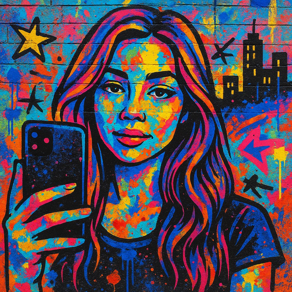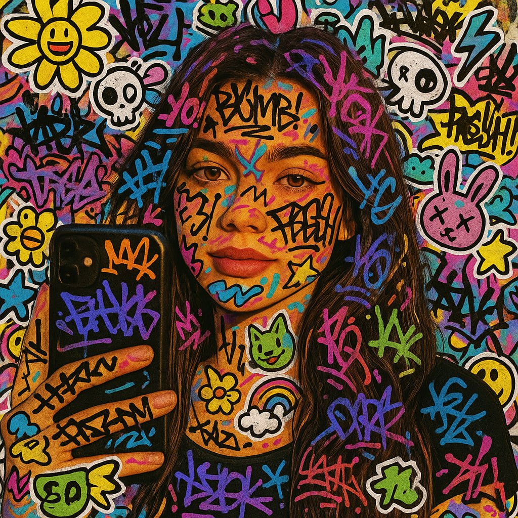 Превратите это изображение в красочное уличное искусство граффити с помощью аэрозольной краски, городских мотивов и грубых очертаний