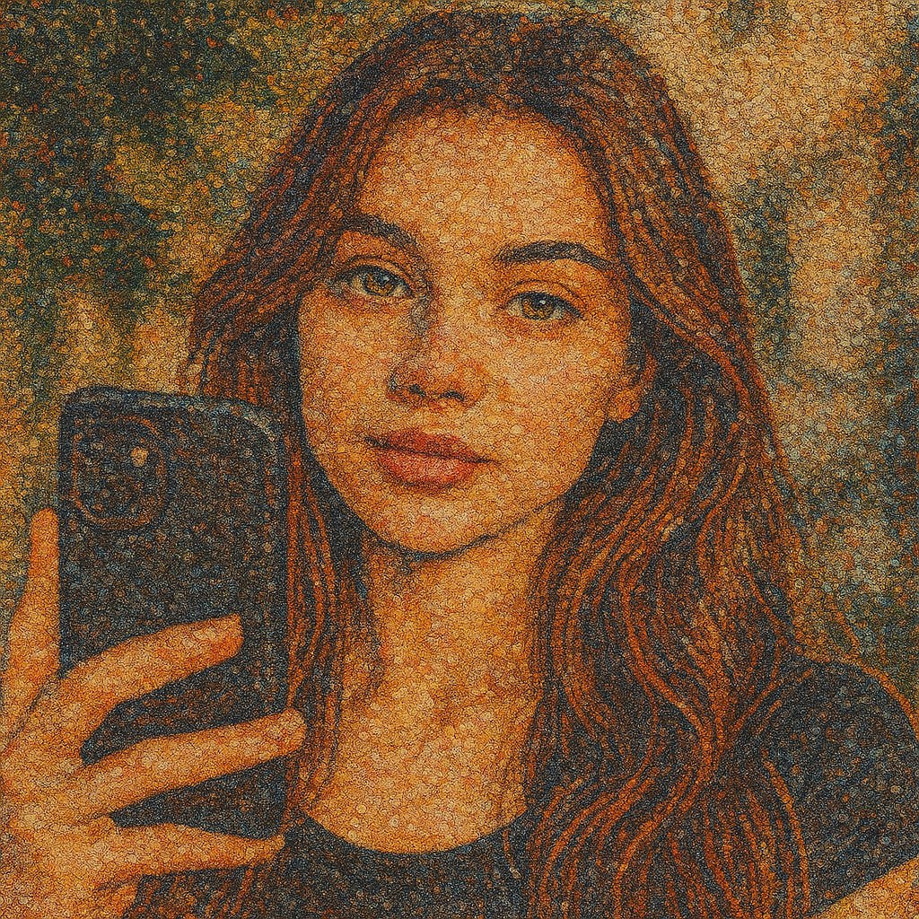 Перерисуй это изображение в стиле Pointillism, сохрани все ключевые детали, создай изображение из точек, добавь текстуру и зернистость.