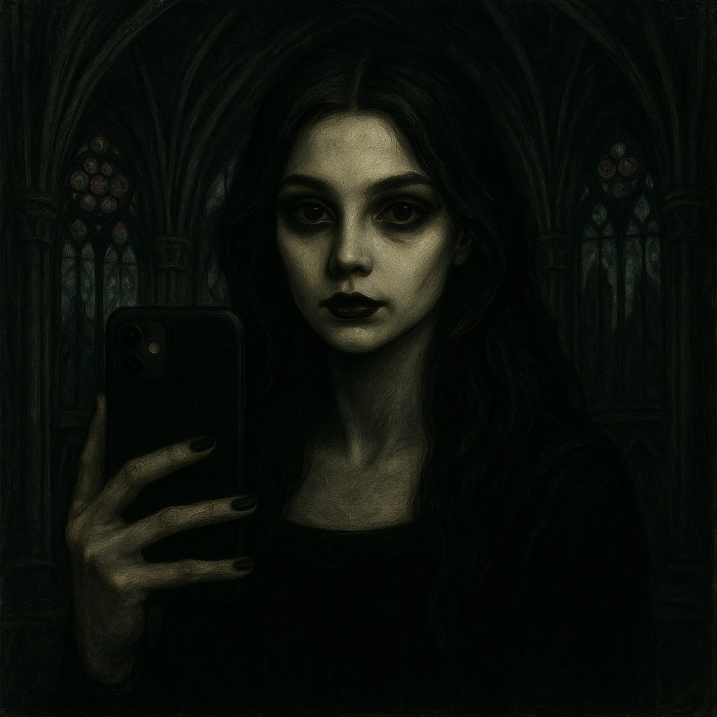 Превратите это изображение в готическое искусство со стрельчатыми арками, витражами и мрачной романтикой