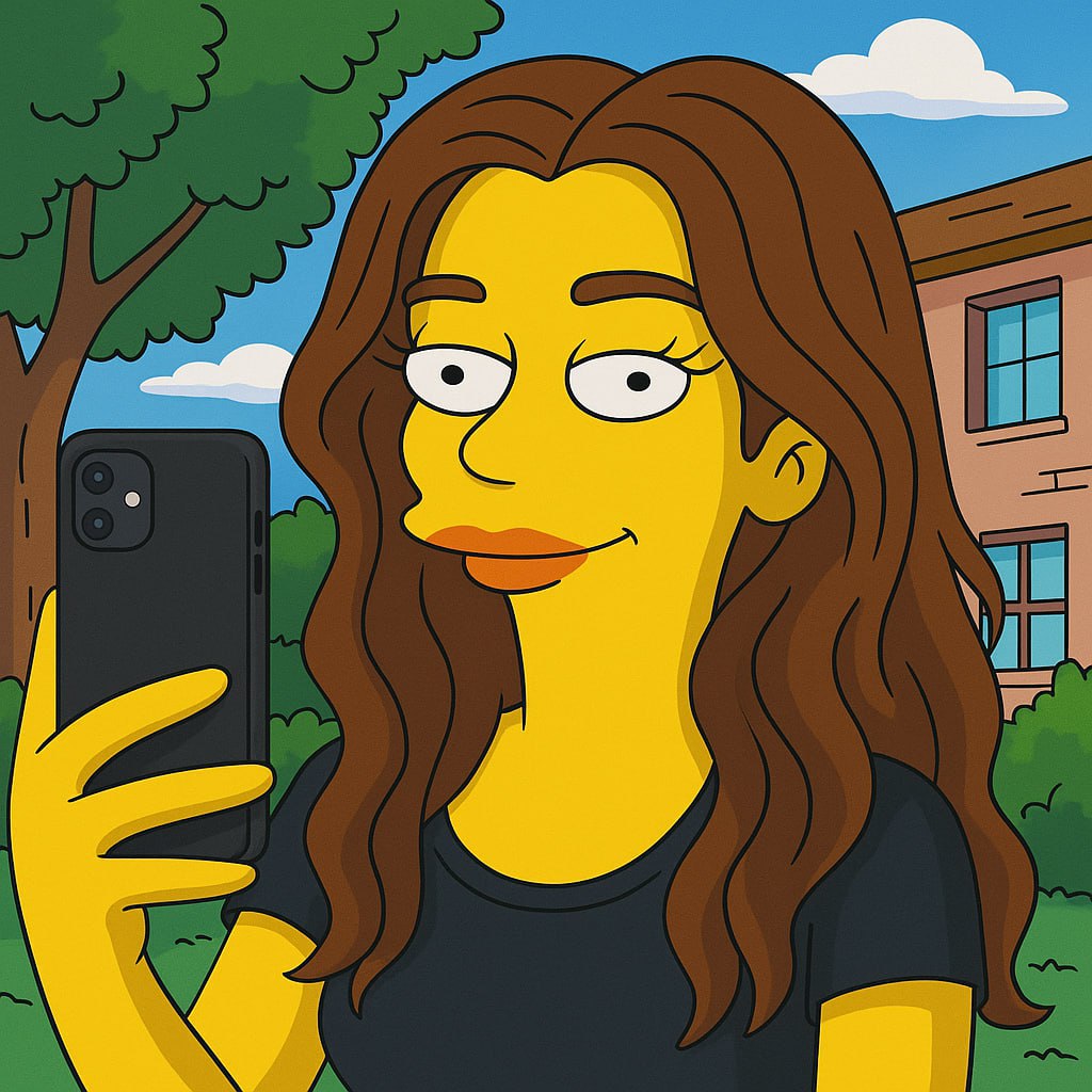 Перерисуй это изображение в стиле мультфильма "Simpsons". Добавь фон в стиле мультфильма