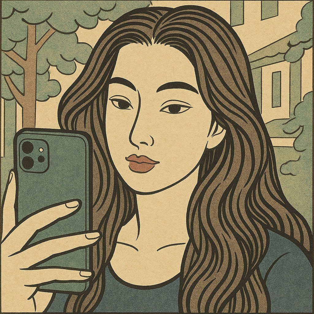Сделай снимок человека с изображения самого обычного, безликого селфи на iPhone, без четкого объекта съемки и без чувства композиции - как обычный снимок.