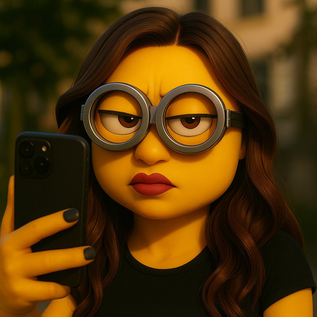 Представь персонажа с этого фото в виде миньона с желтой кожей, защитными очками и дерзким характером.