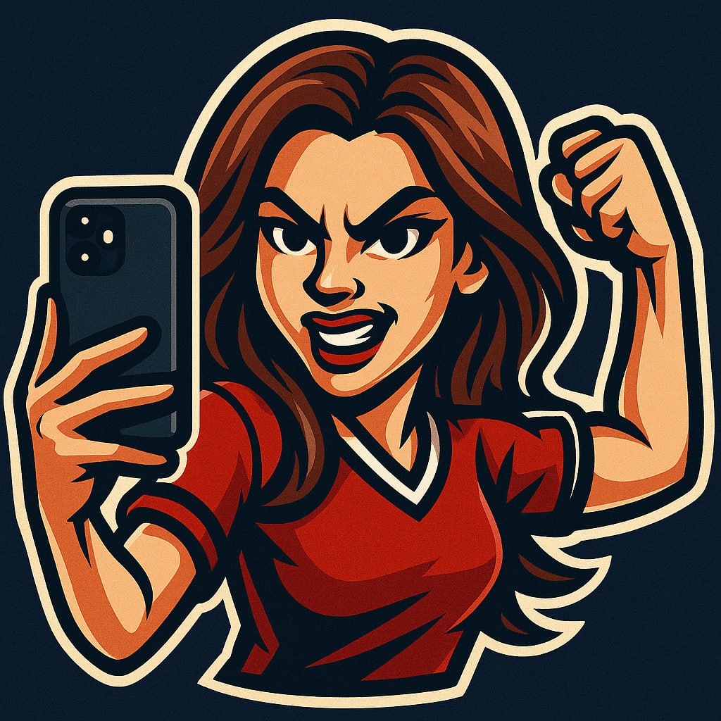 Создай дизайн логотипа в стиле маскота спортивной команды на основе моей фотографии. Преувеличь черты лица, добавь спортивную одежду и энергичную позу. Стиль - агрессивный, с дерзким настроением, как у логотипов команд NBA или NHL