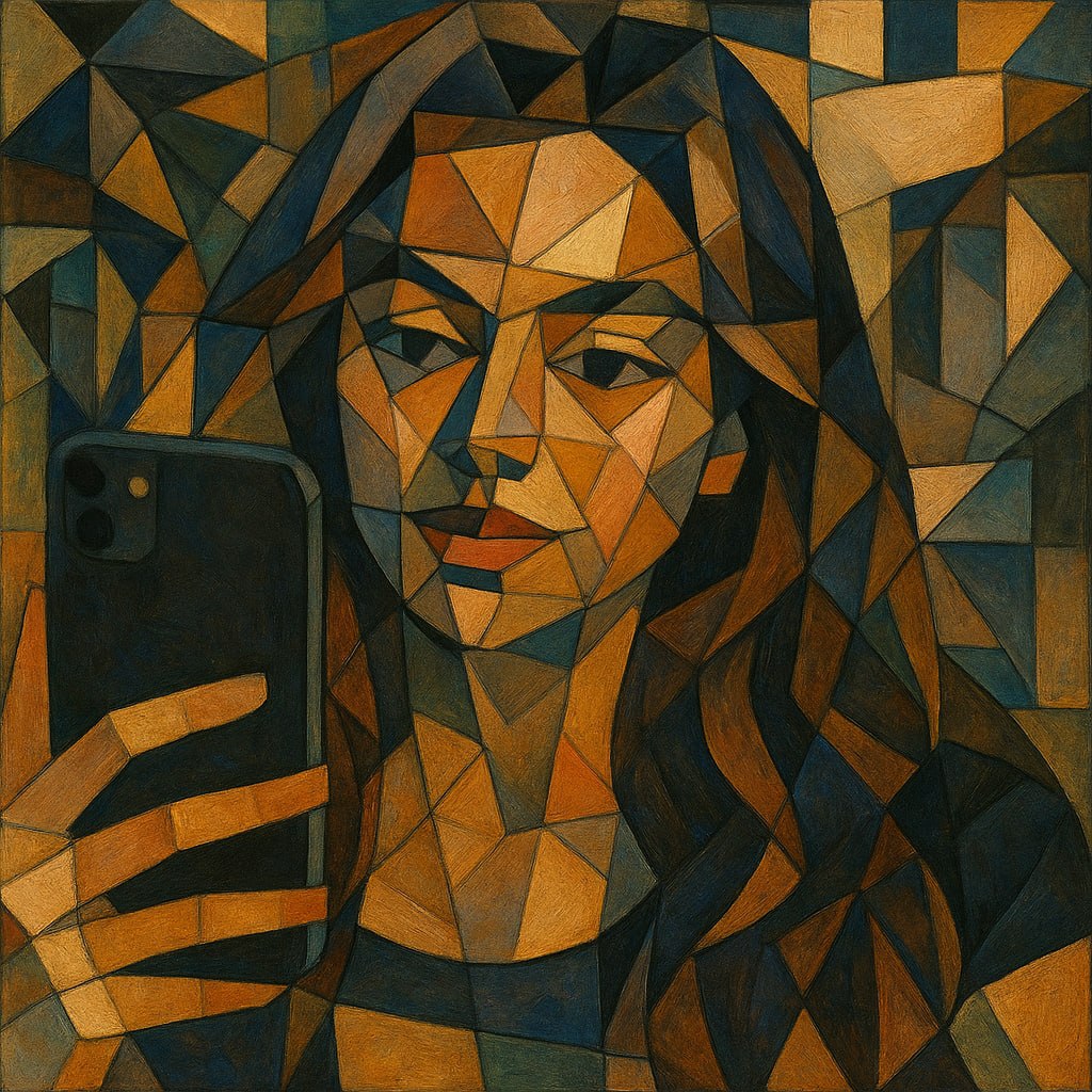 Превратите это изображение в произведение кубизма с фрагментированной геометрией и множеством точек обзора